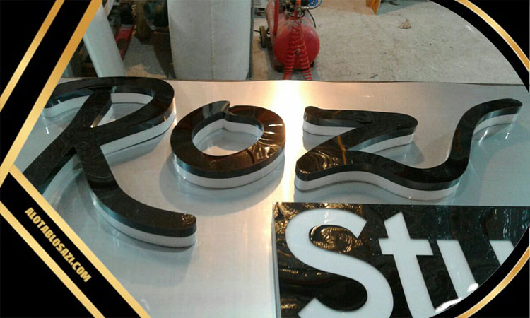 لبه حروف استیل به صورت برجسته و ضخیم ساخته میشه