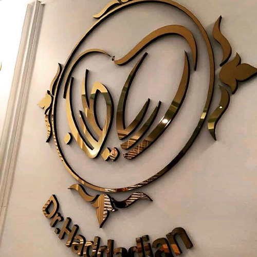 استفاده از تابلو استیل برای نمایش لوگو پشت میز مدیریت یا ورودی